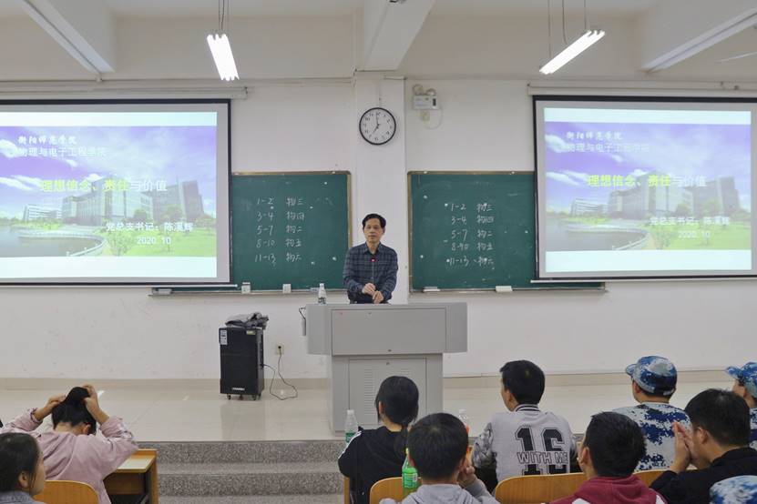 为培养新生树立正确人生观念,确定发展目标,10月20日晚,公司党总书记陈溪辉在理科楼南112召开了主题为“理想信念·责任与价值”的讲座,2020级新生积极参与。